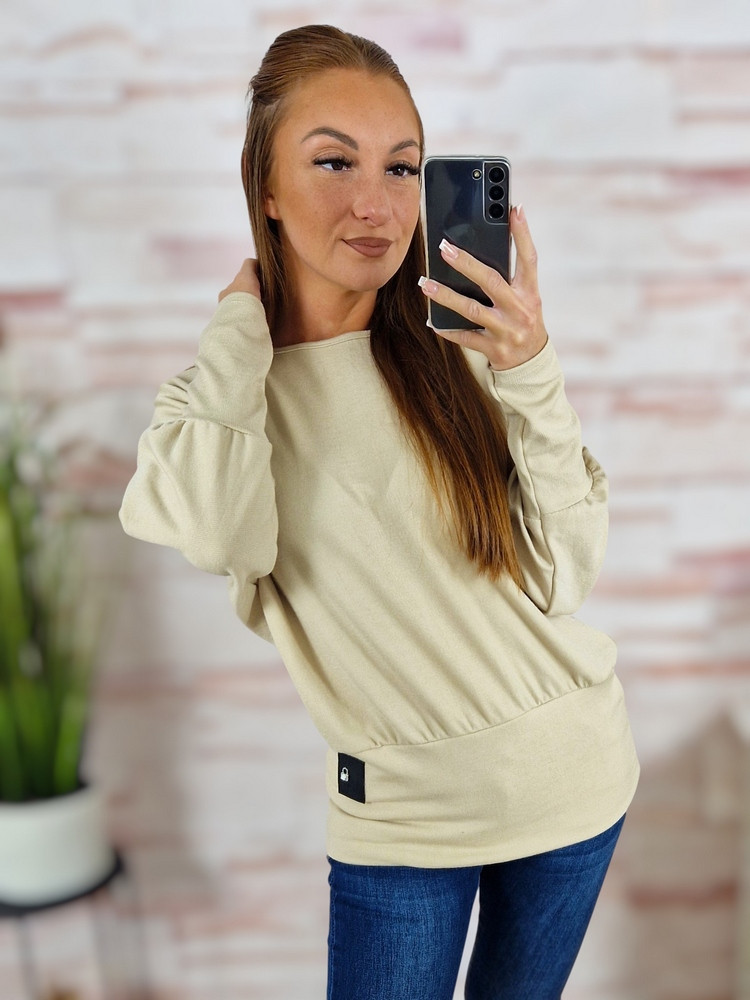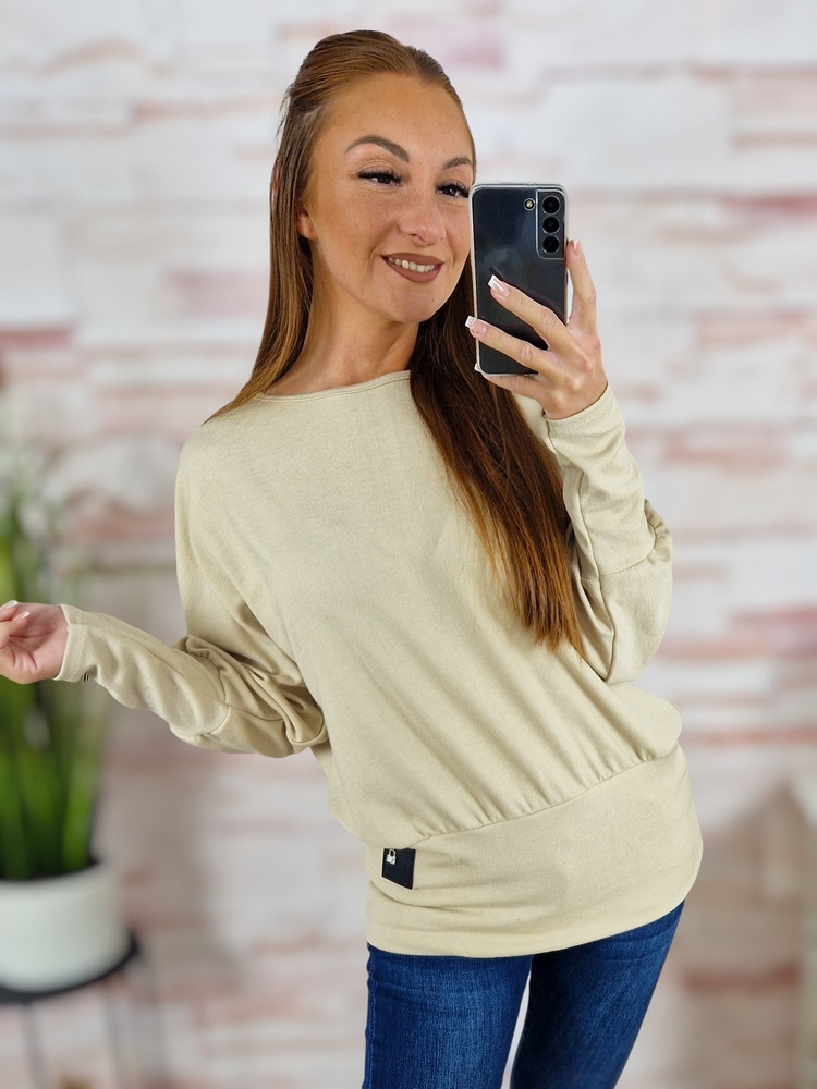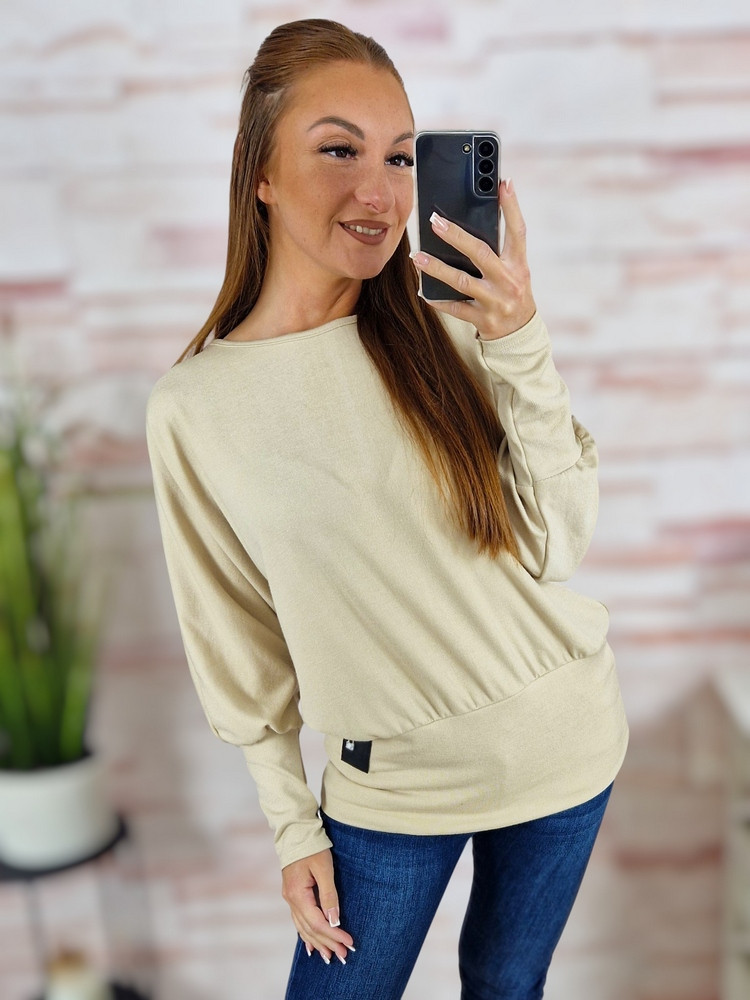 Denevér és hosszú ujjú, passzés aljú, gépi kötött anyagú felső M-L