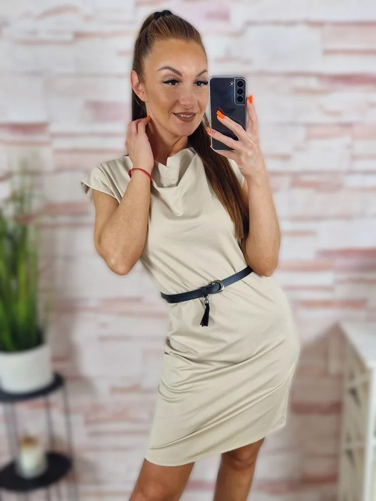 Ejtett nyakú, ujjatlan, öves ruha S-M