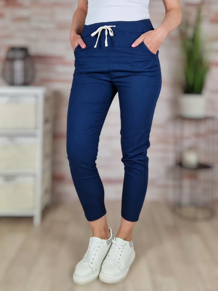 Gumis derekú, len anyagú, sötétkék nadrág S-M,M-L,L-XL,XL-XXL