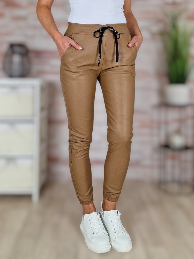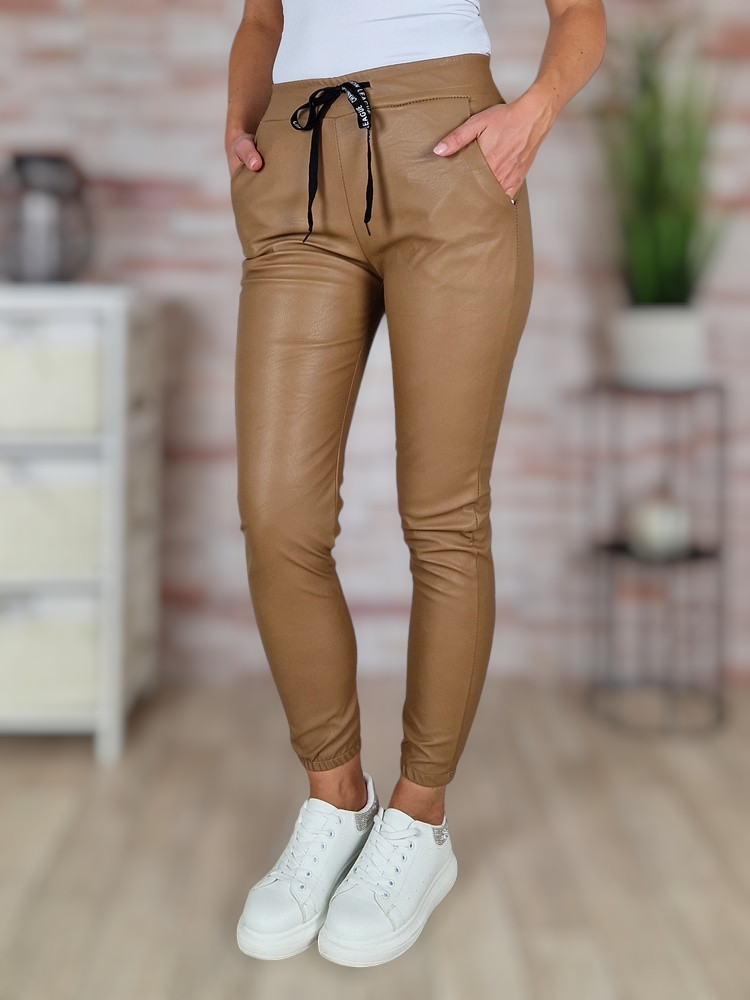 Gumis derekú, megkötős, barna műbőr nadrág S-XL-ig