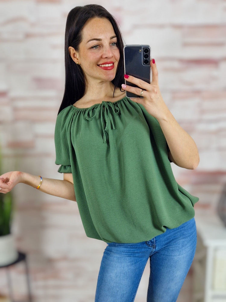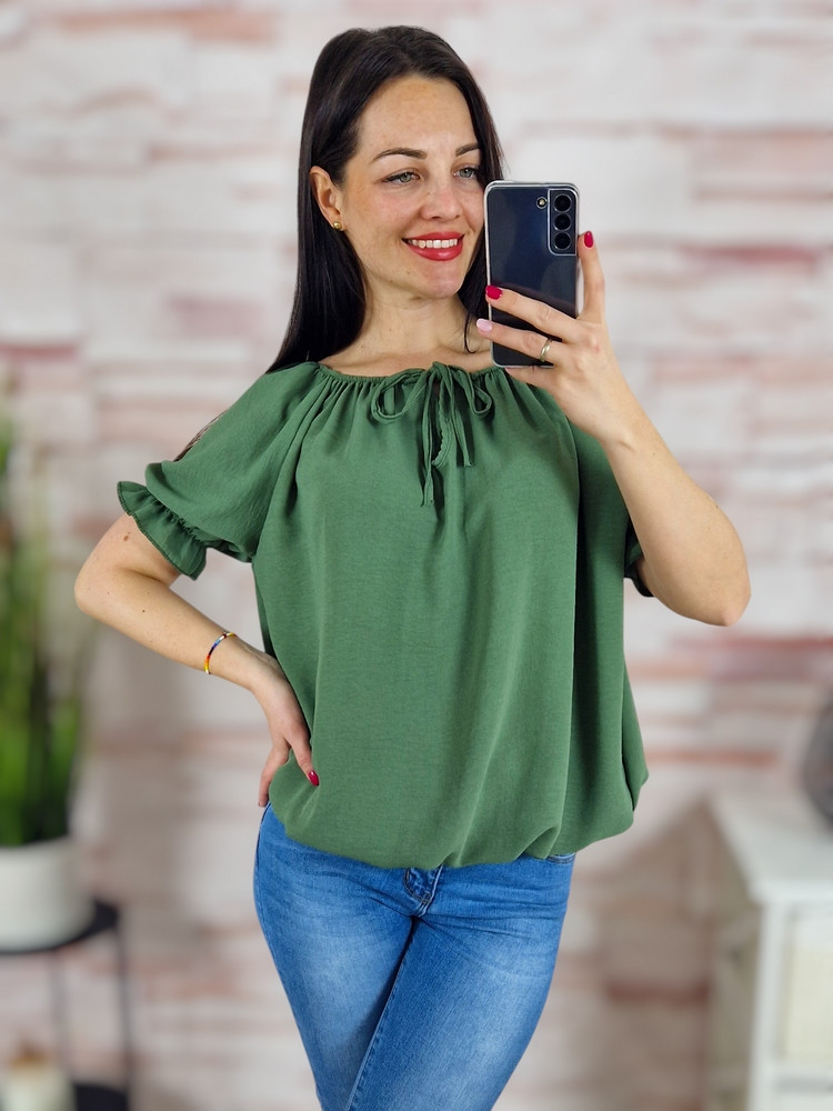 Gumis vállú és aljú, rövid ujjú felső M-L