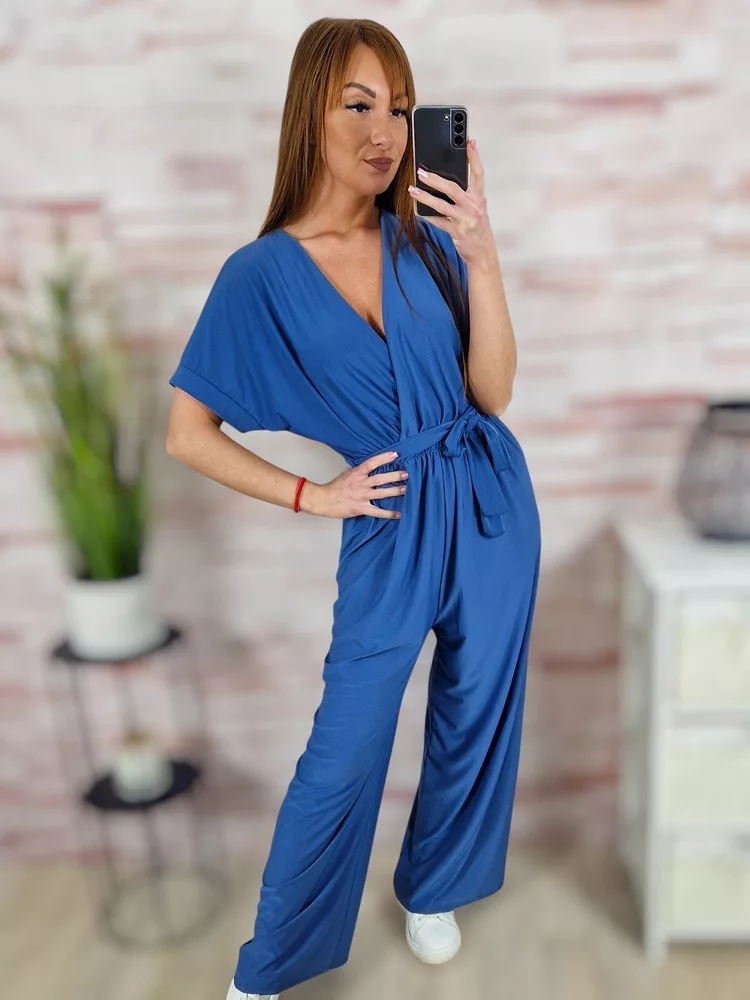 Mellnél átlapolt, gumis derekú, bő szárú overál M-L