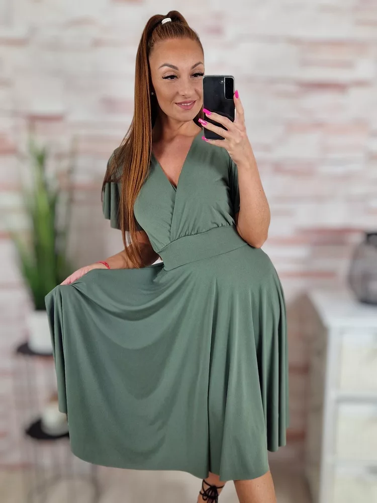 Mellnél átlapolt, loknis aljú ruha S-M