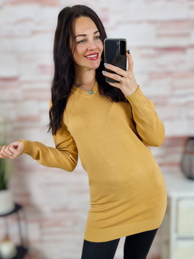 Passzés aljú és ujjú, v nyakú, gépi kötött anyagú tunika S-M-L