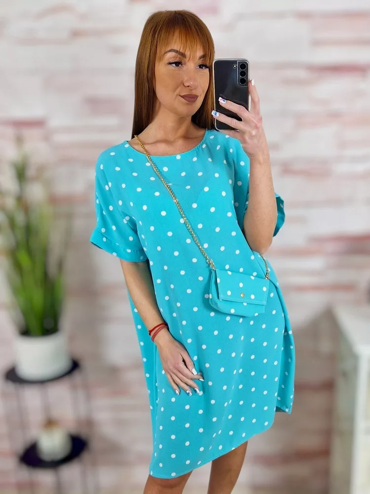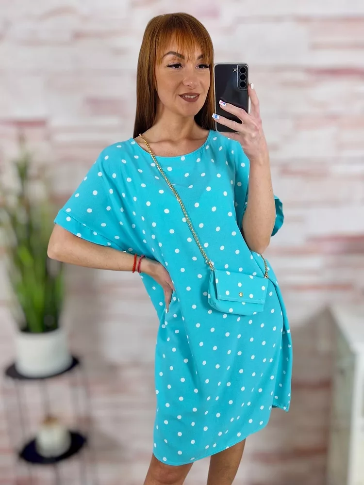 Pöttyös, rövid ujjú, ruha kis táskával L-XL