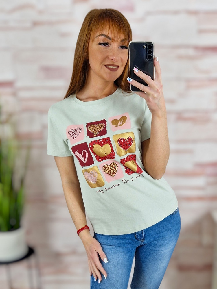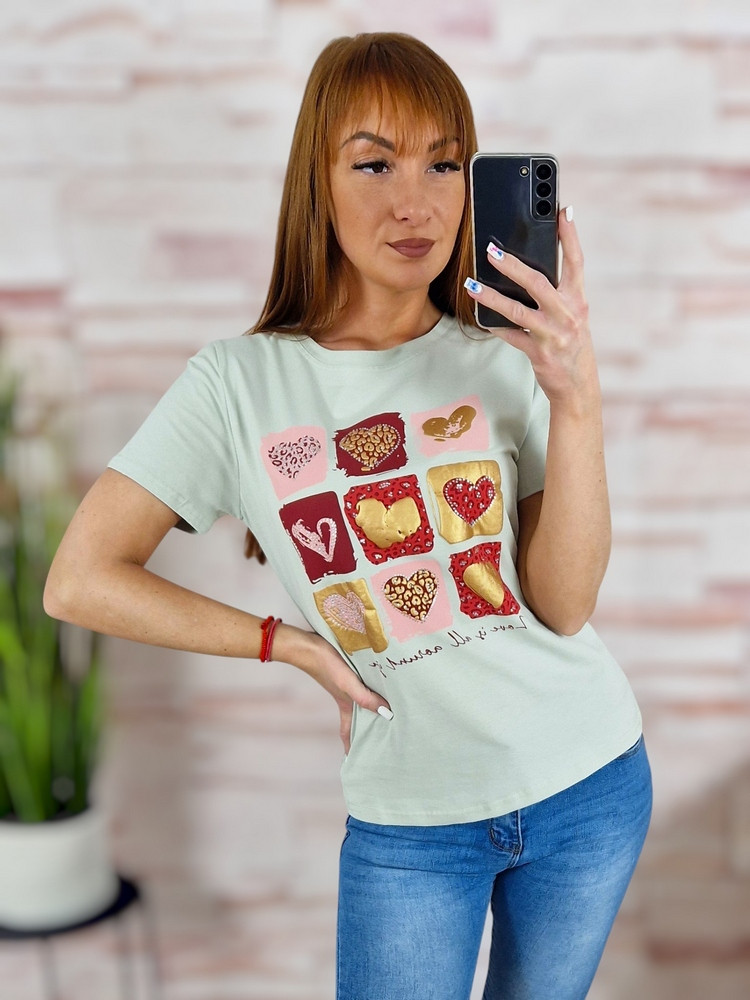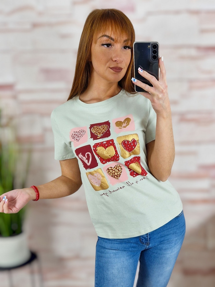Szives mintás, strasszos díszítésű, rövid ujjú poló S-M