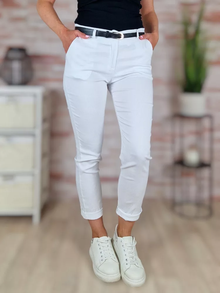 Sztreccses, öves, fehér nadrág S-XL-ig