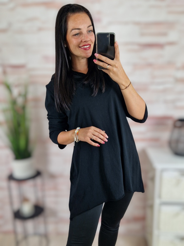 Kapucnis, hátul hosszított, pamut tunika S-M-L
