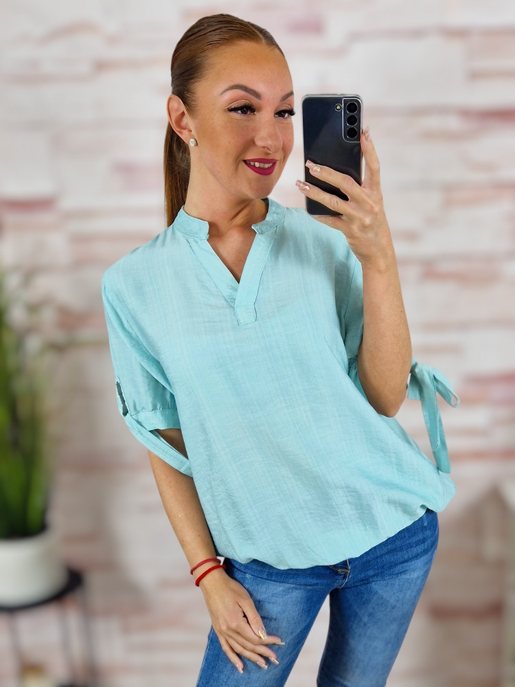 Gumis aljú, rövid ujjú, v nyakú felső M-L