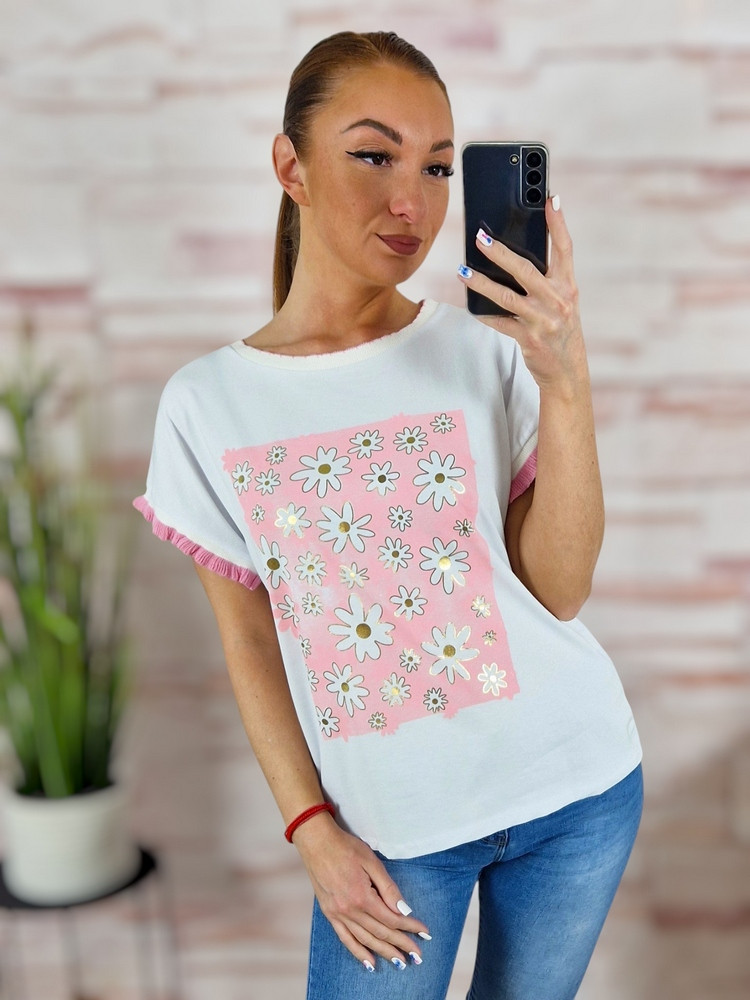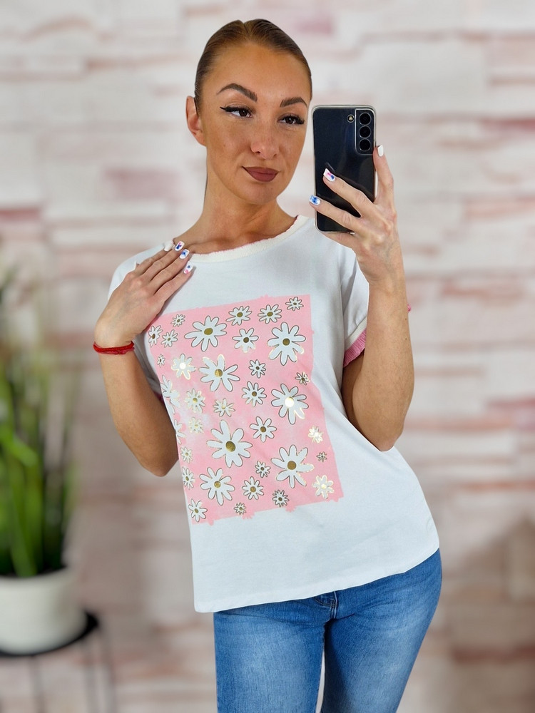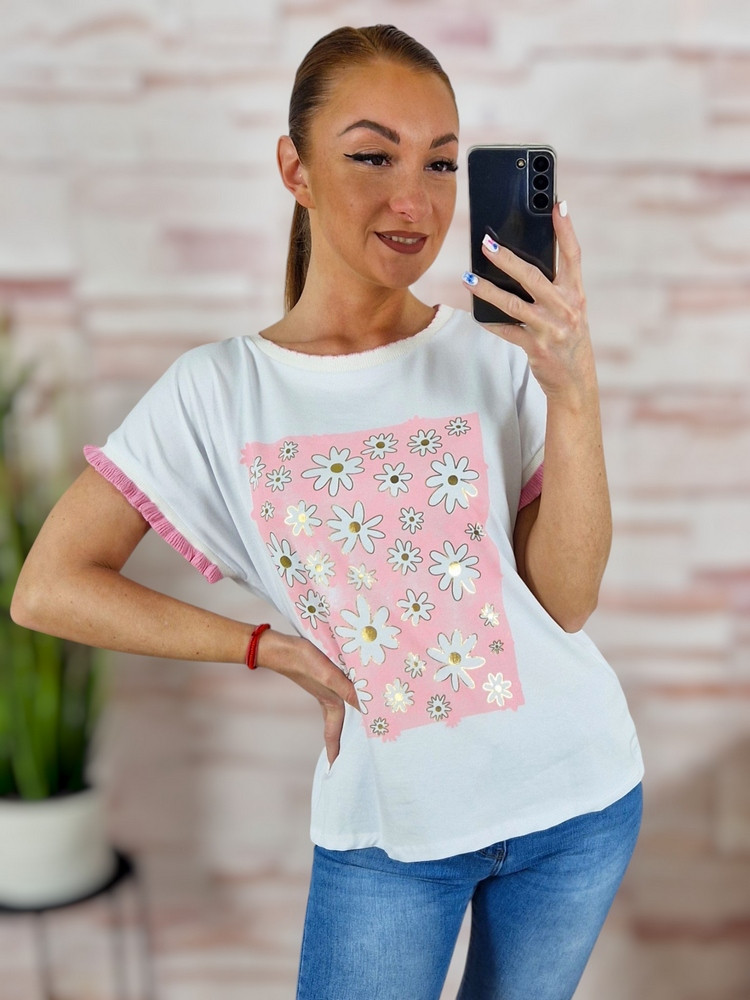 Virágmintás, fodros ujjú, pamut felső S-M-L