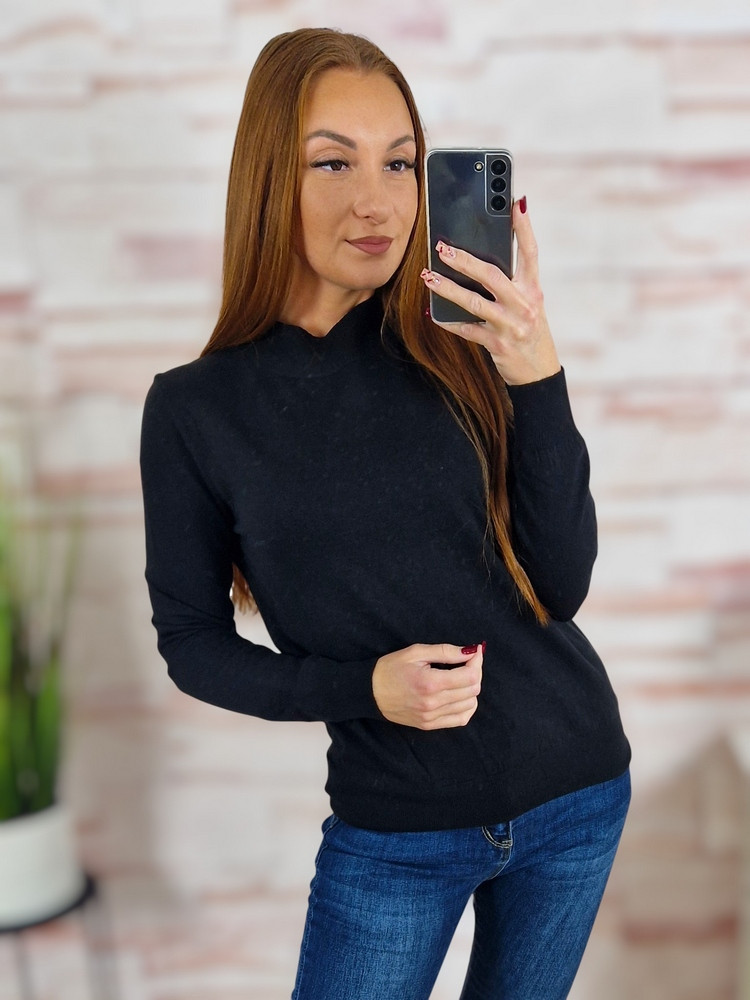 Félgarbós nyakú, puha, gépi kötött anyagú felső M-L