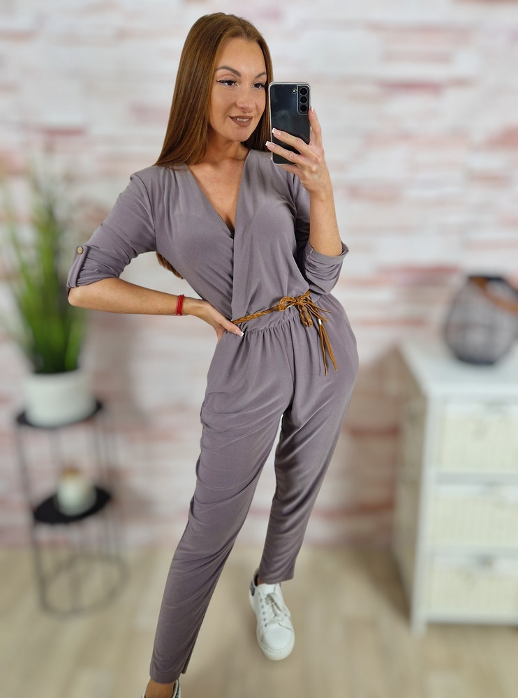 Mellnél átlapolt, gumis derekú, roll-up ujjú overáll S-M-L