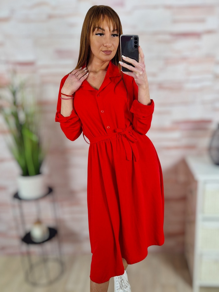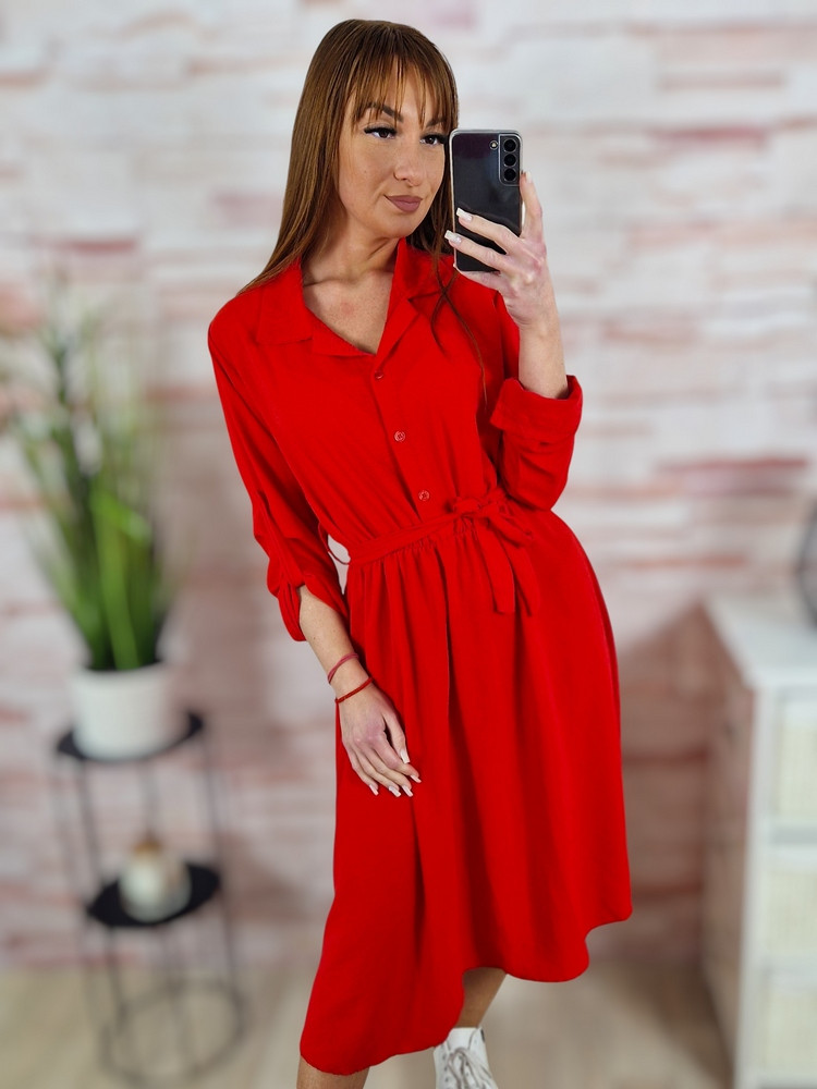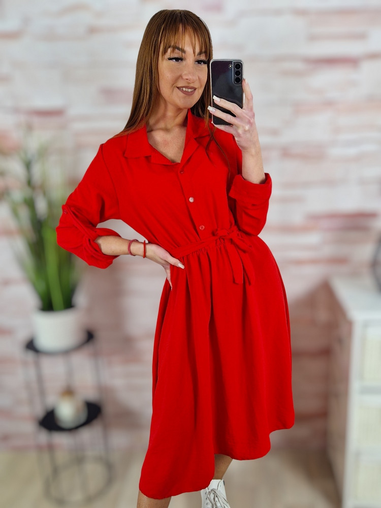 Deréknál megkötős, mellig gombos,  roll-up ujjú  ruha S-M-L