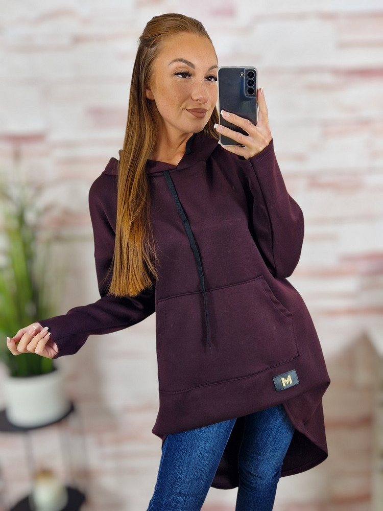 Kapucnis, hátul hosszított, kenguru zsebes pulóver M-L-XL
