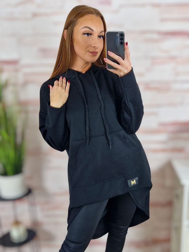 Kapucnis, hátul hosszított, kenguru zsebes pulóver M-L-XL
