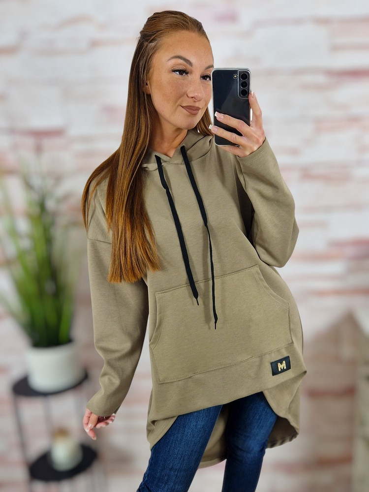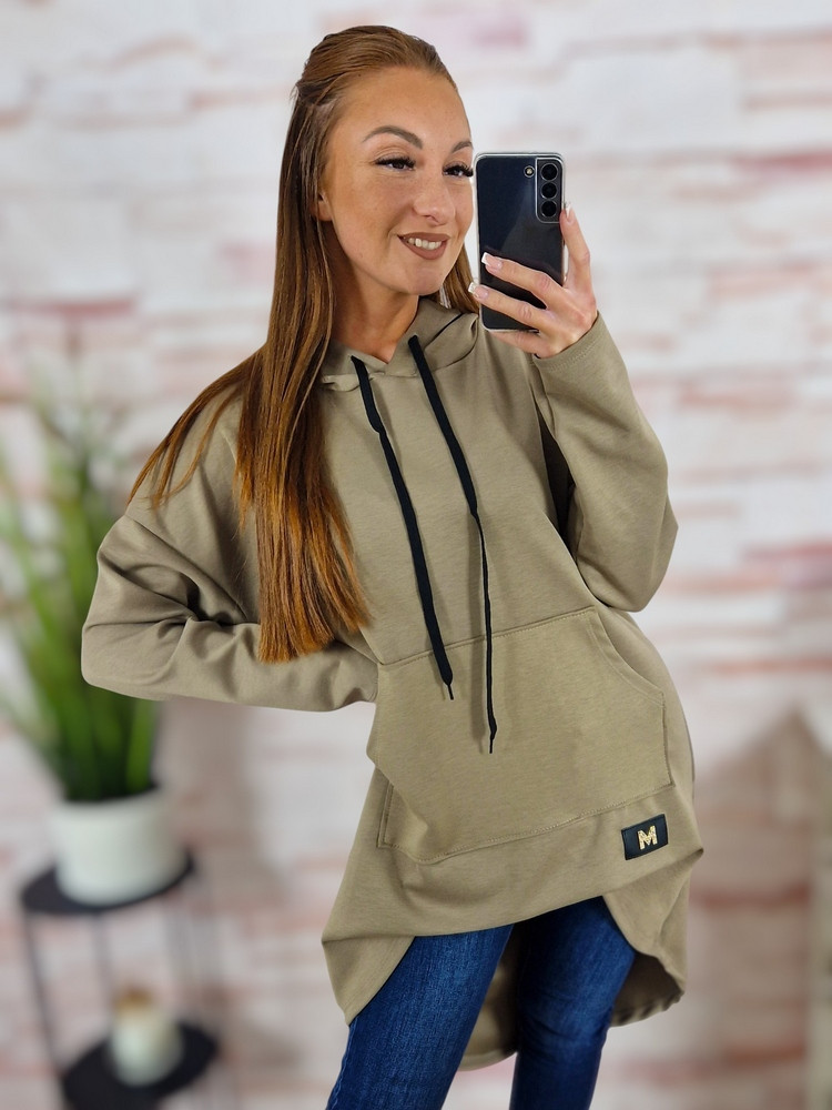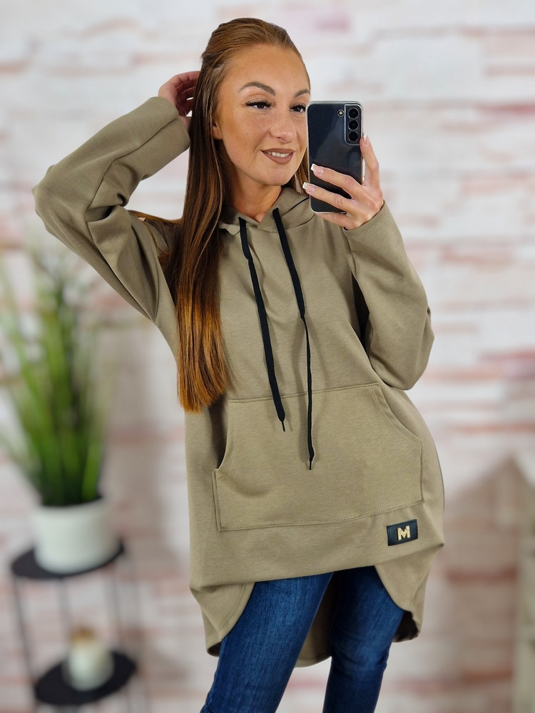 Kapucnis, hátul hosszított, kenguru zsebes pulóver M-L-XL