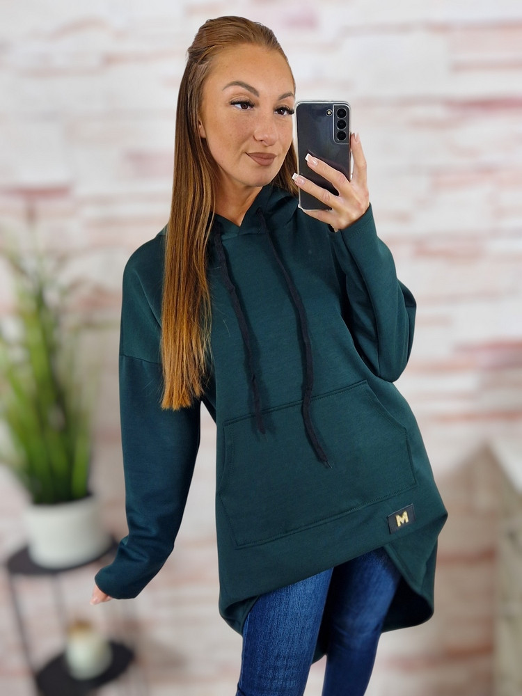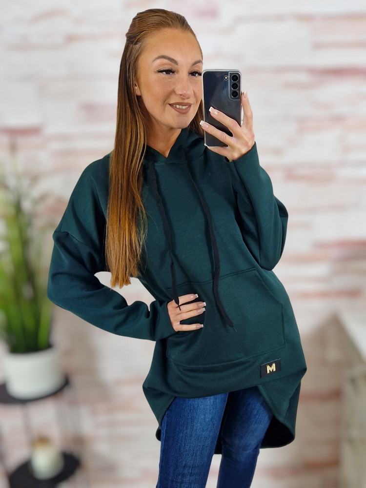 Kapucnis, hátul hosszított, kenguru zsebes pulóver M-L-XL