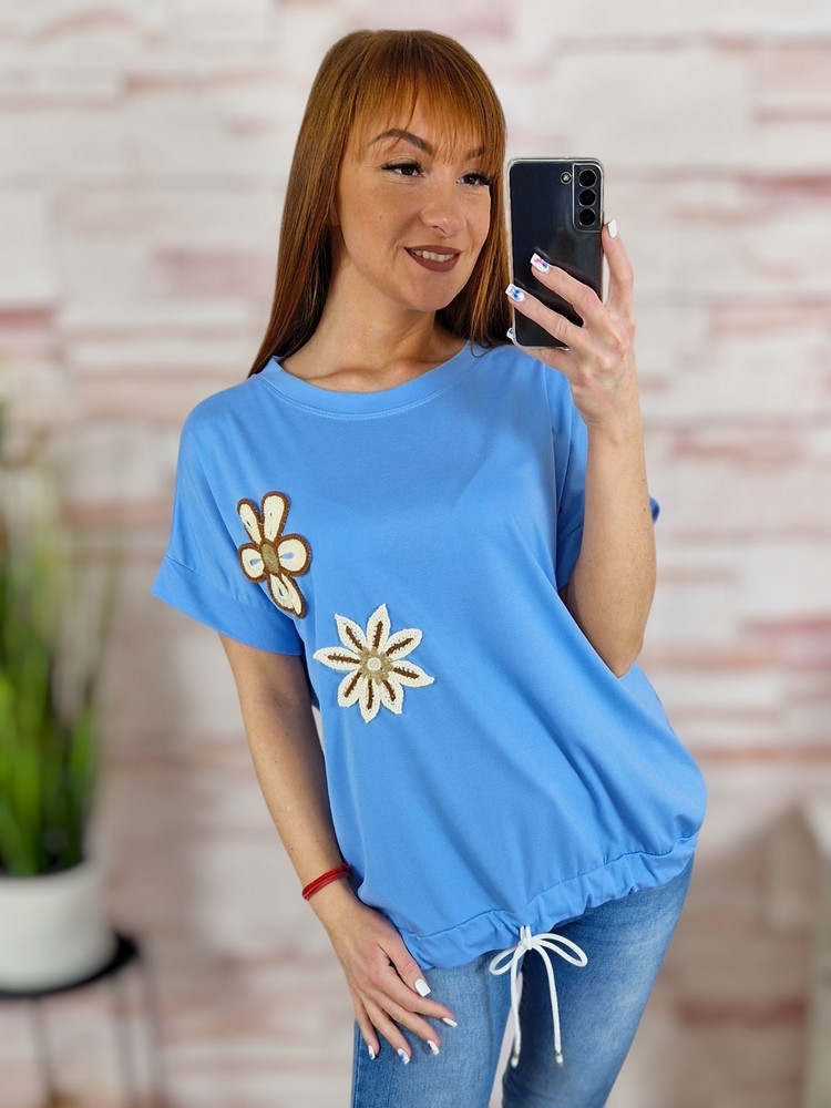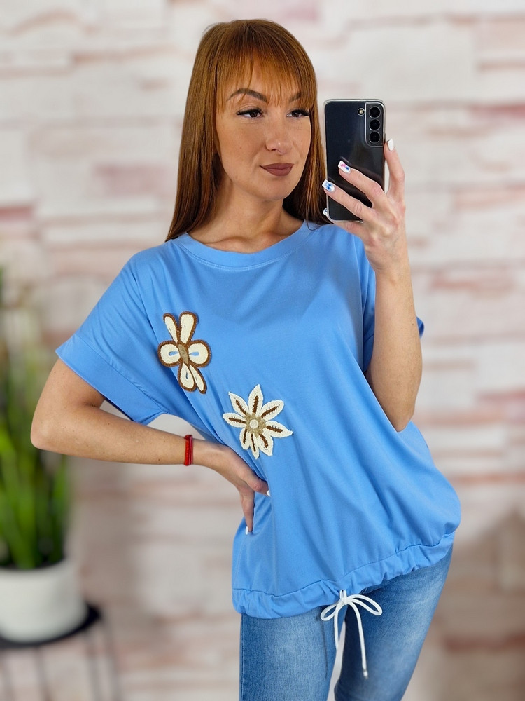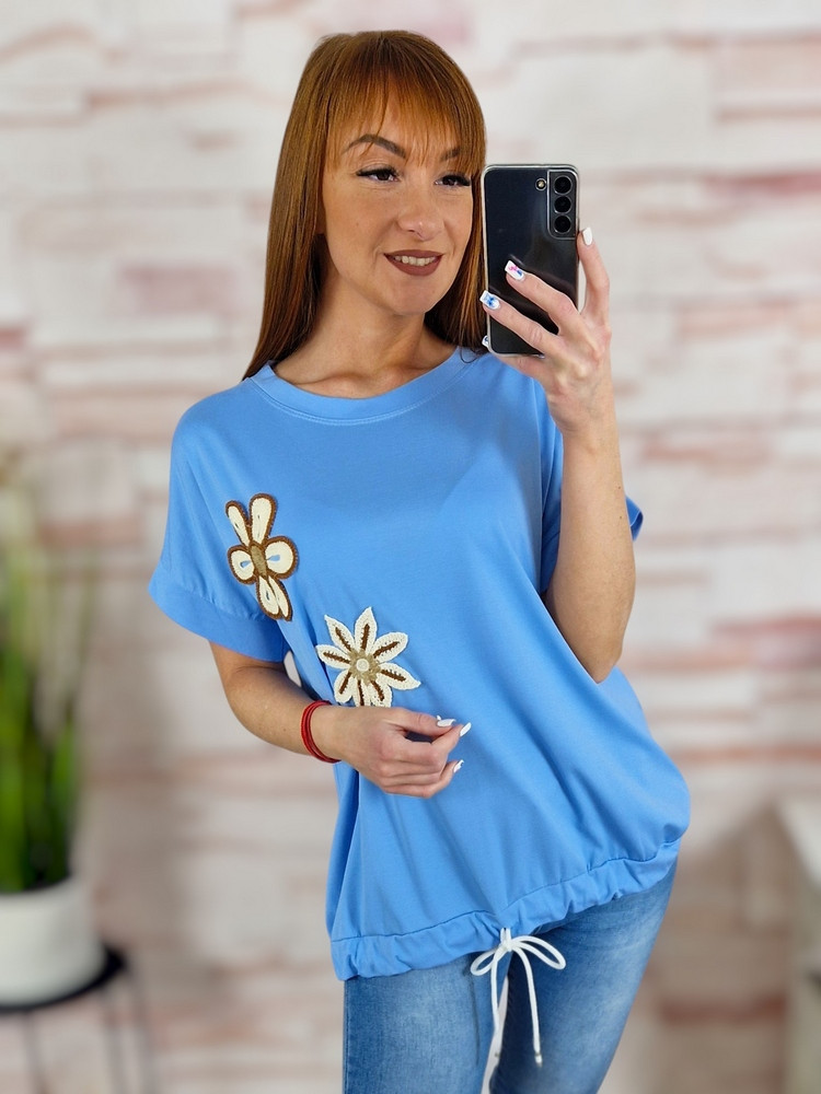 Hímzett virágmintás, hátul hosszított, alján összehúzható felső M-L