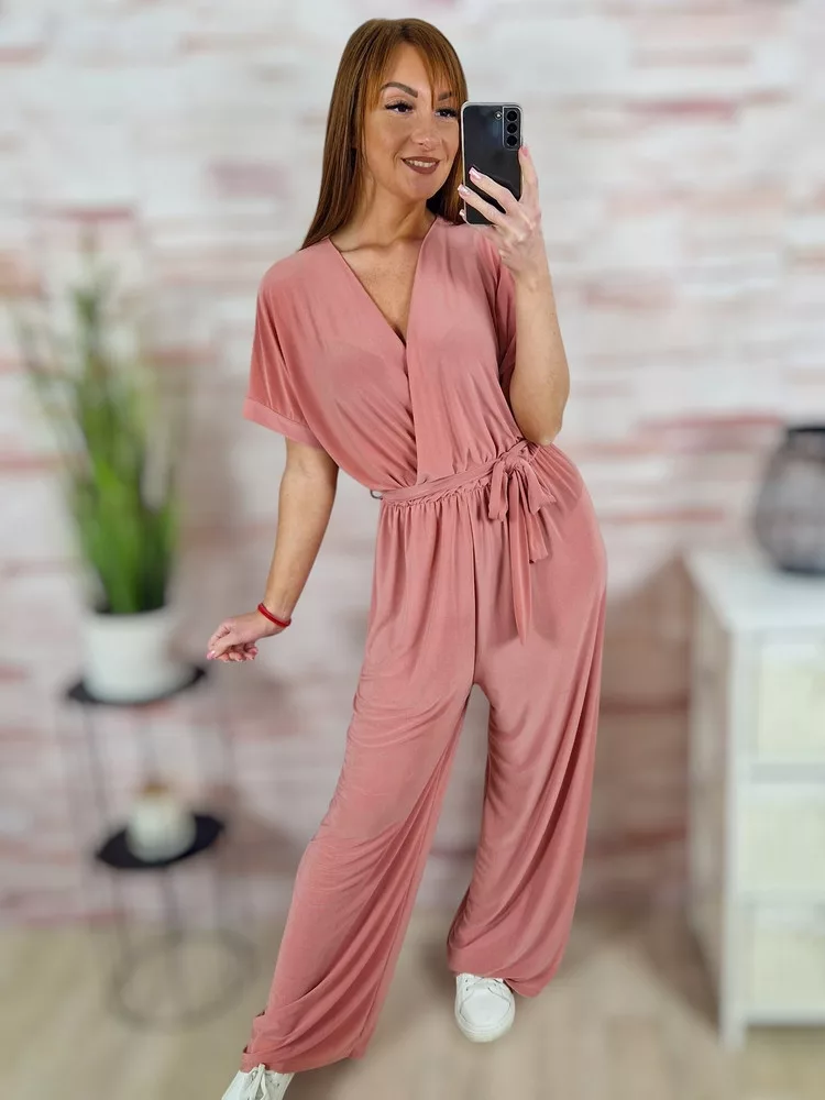 Mellnél átlapolt, gumis derekú, bő szárú overál M-L