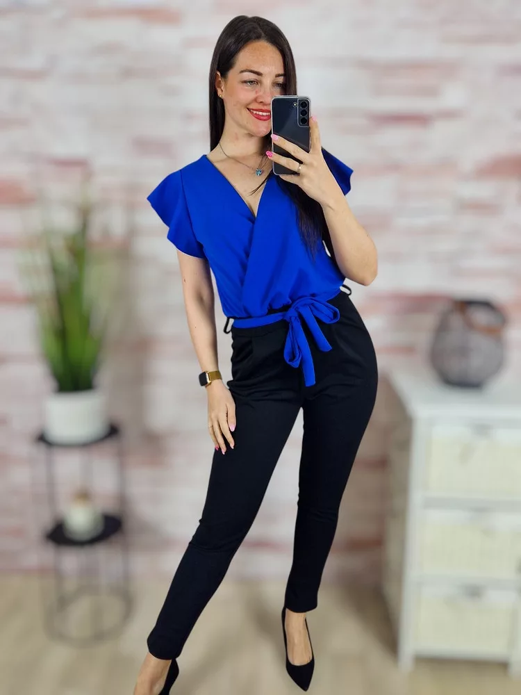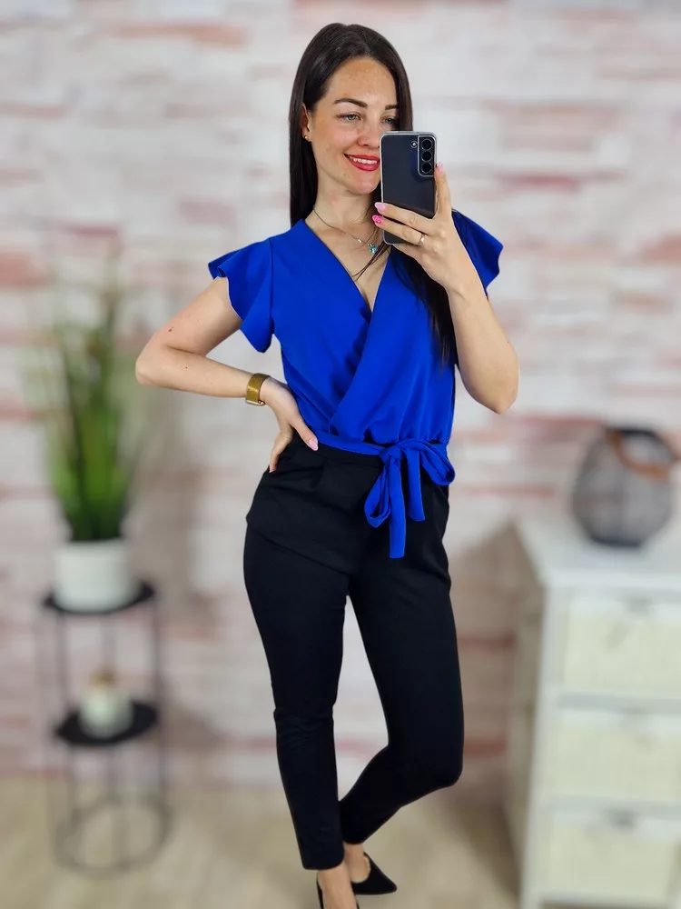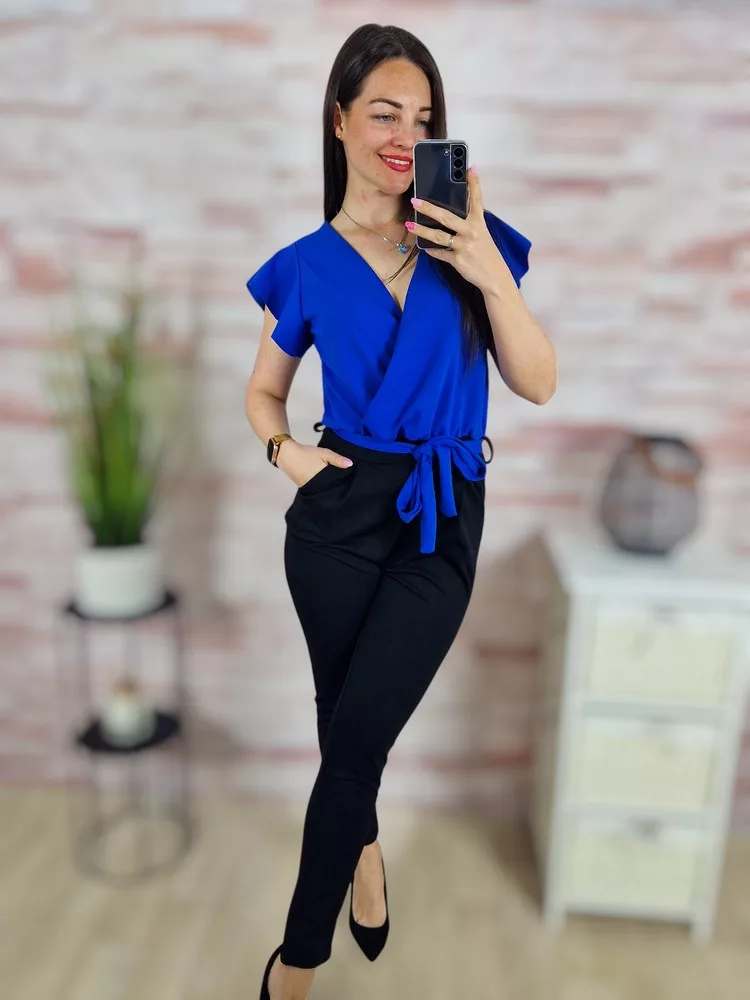Mellnél átlapolt, zsebes, pillangó ujjú overál S-M