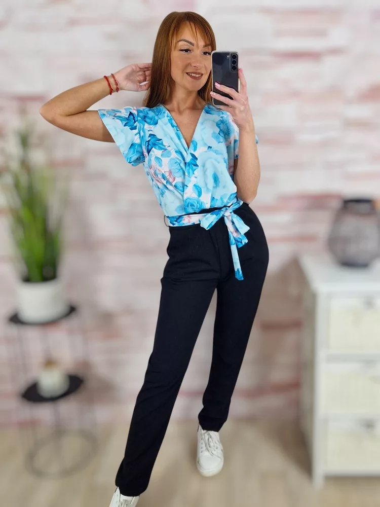 Virágmintás, mellnél átlapolt, pillangó ujjú overál S-M