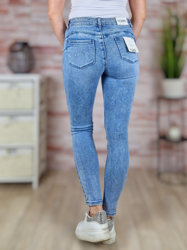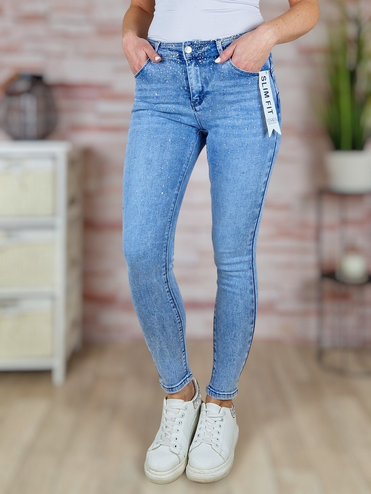 Strasszos díszítésű, push-up, világoskék farmernadrág XS-XL-ig