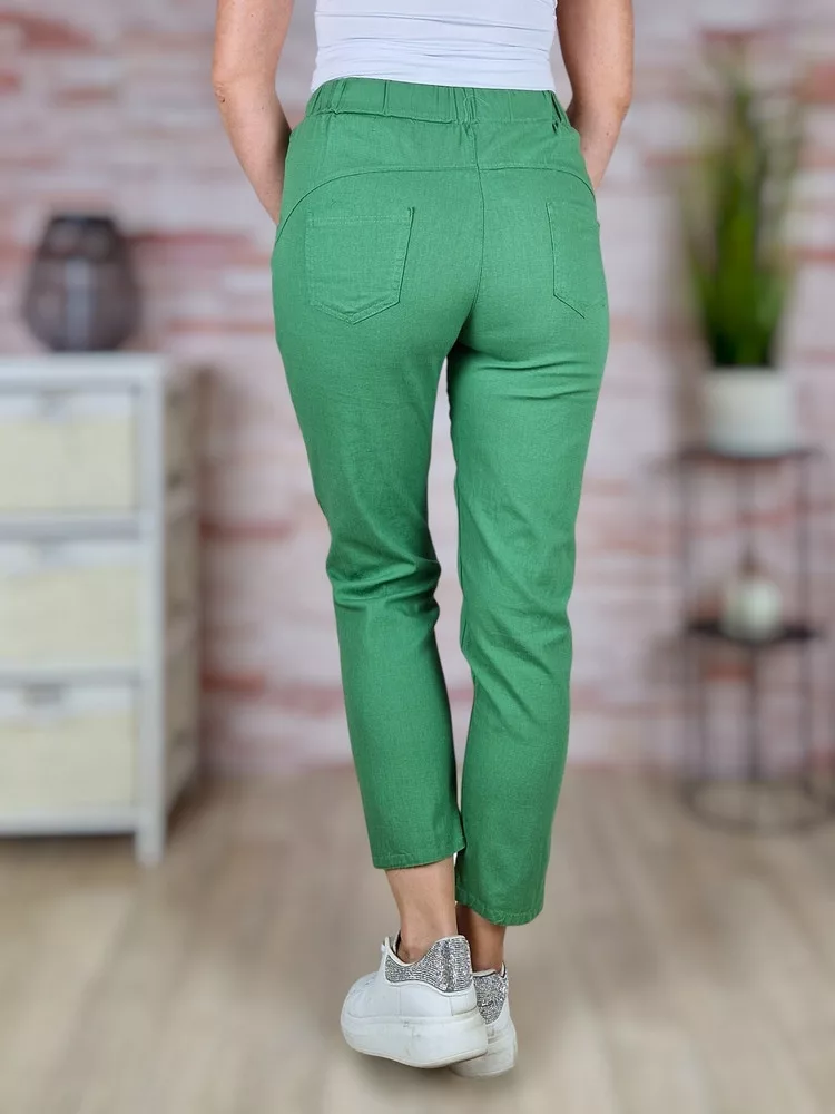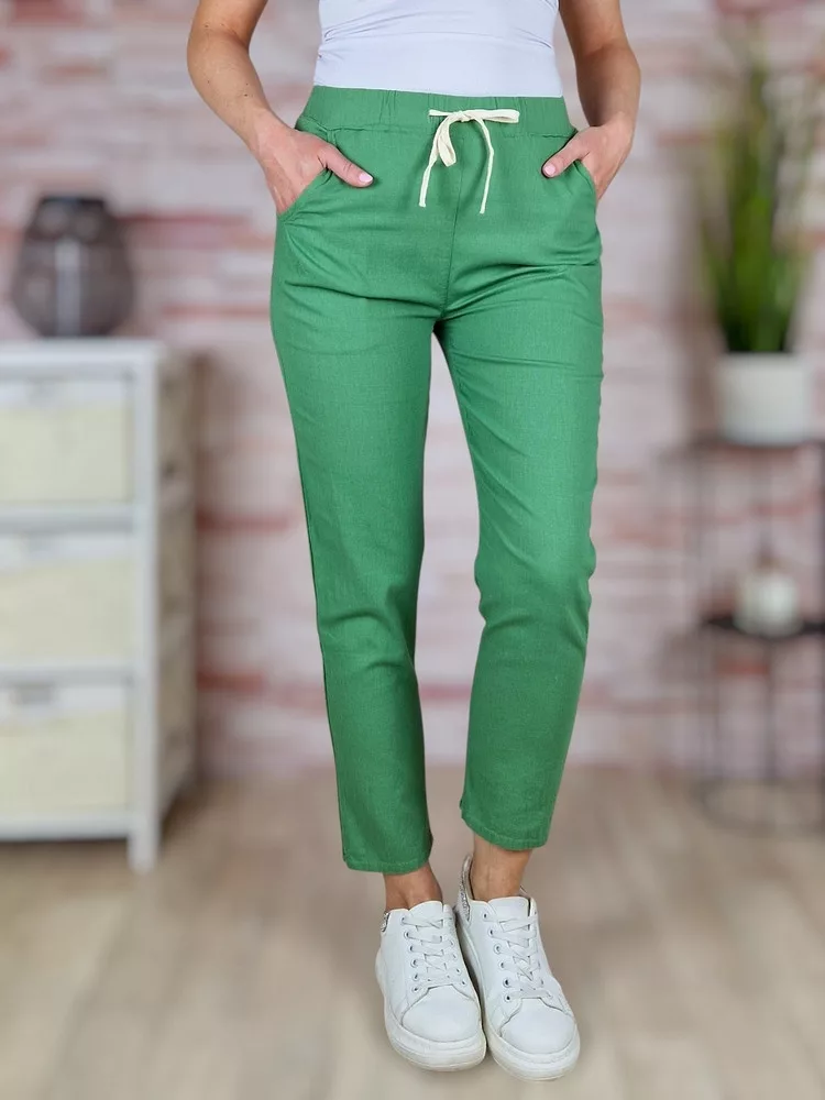 Gumis derekú, len anyagú, zöld nadrág S-M,M-L,L-XL,XL-XXL