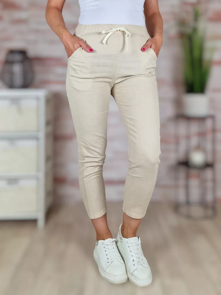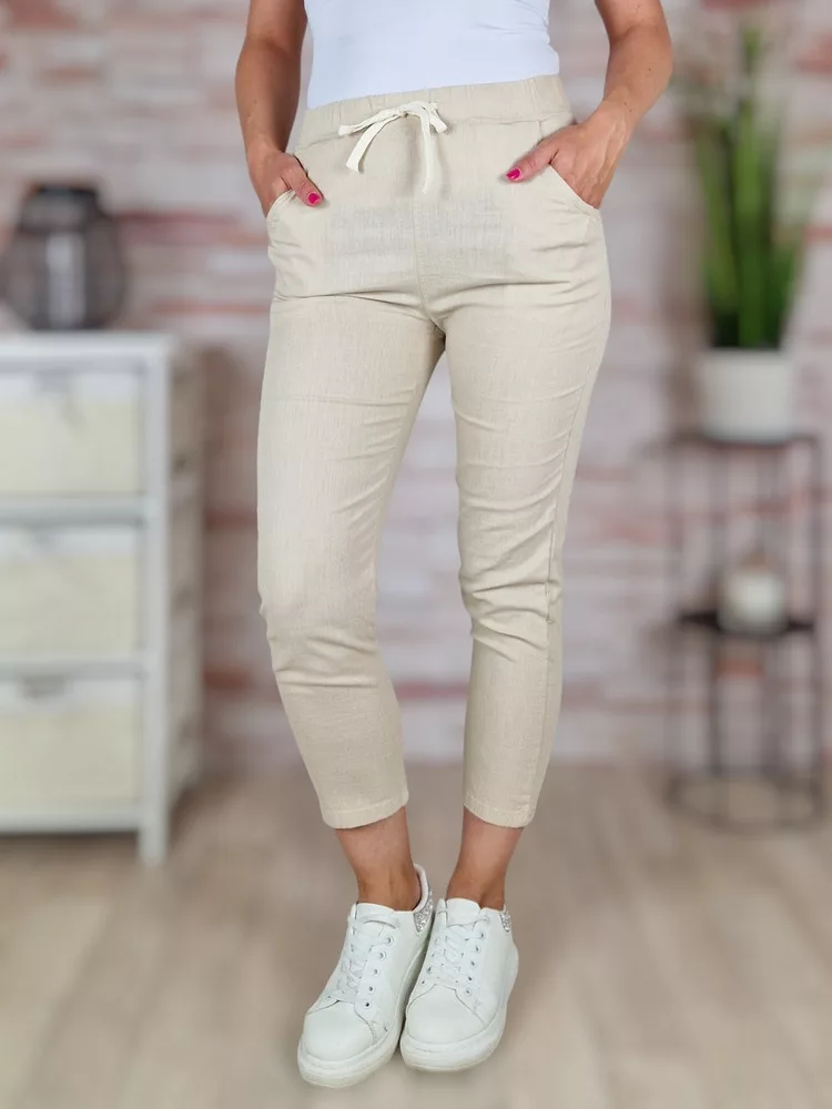 Gumis derekú, len anyagú, bézs nadrág S-M,M-L,L-XL,XL-XXL