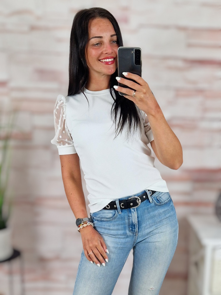 Pöttyös, tüllös és rövid ujjú, bordázott anyagú felső XS-S-M