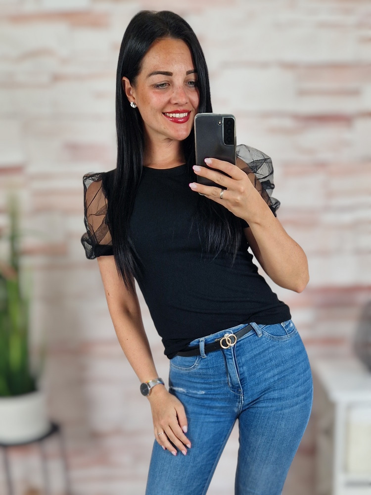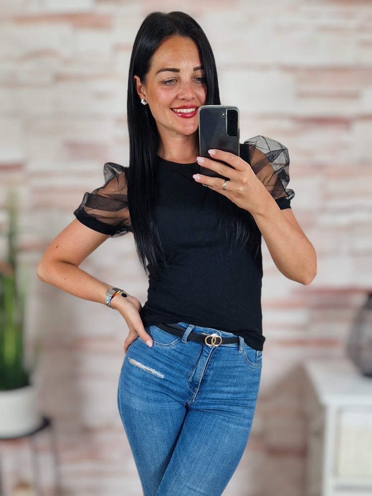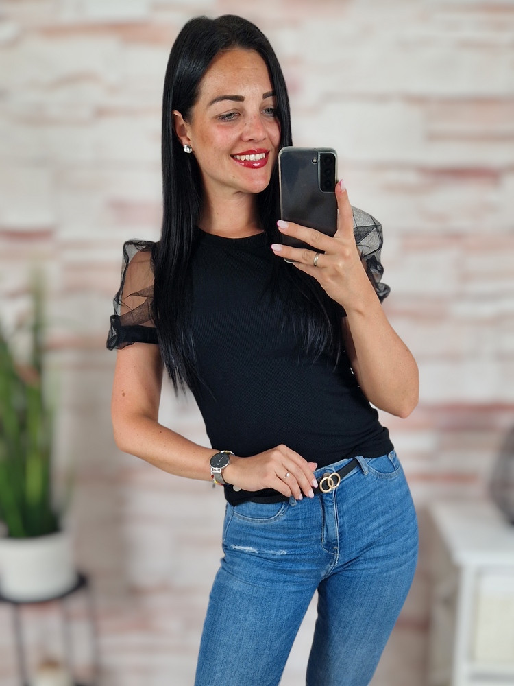 Tüllös és rövid ujjú, bordázott anyagú felső XS-S-M