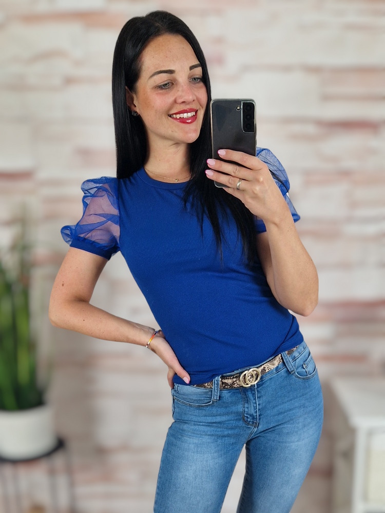 Tüllös és rövid ujjú, bordázott anyagú felső XS-S-M