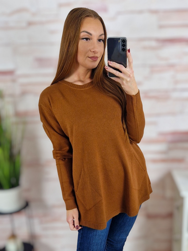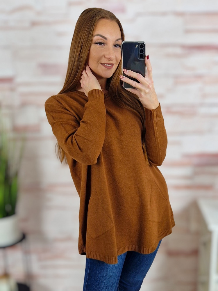 A vonalú, két oldalt zsebes, gépi kötött anyagú felső L-XL