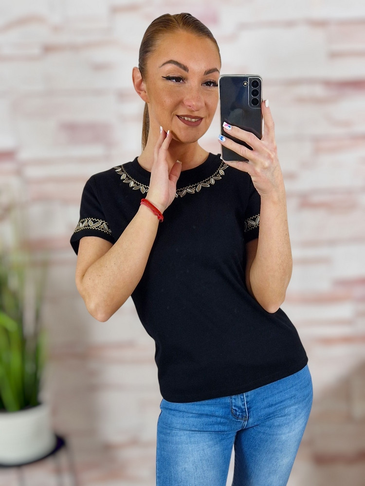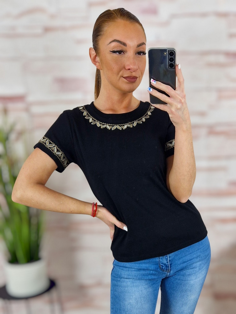 Hímzett díszítésű, rövid ujjú, pamut poló S-M,M-L