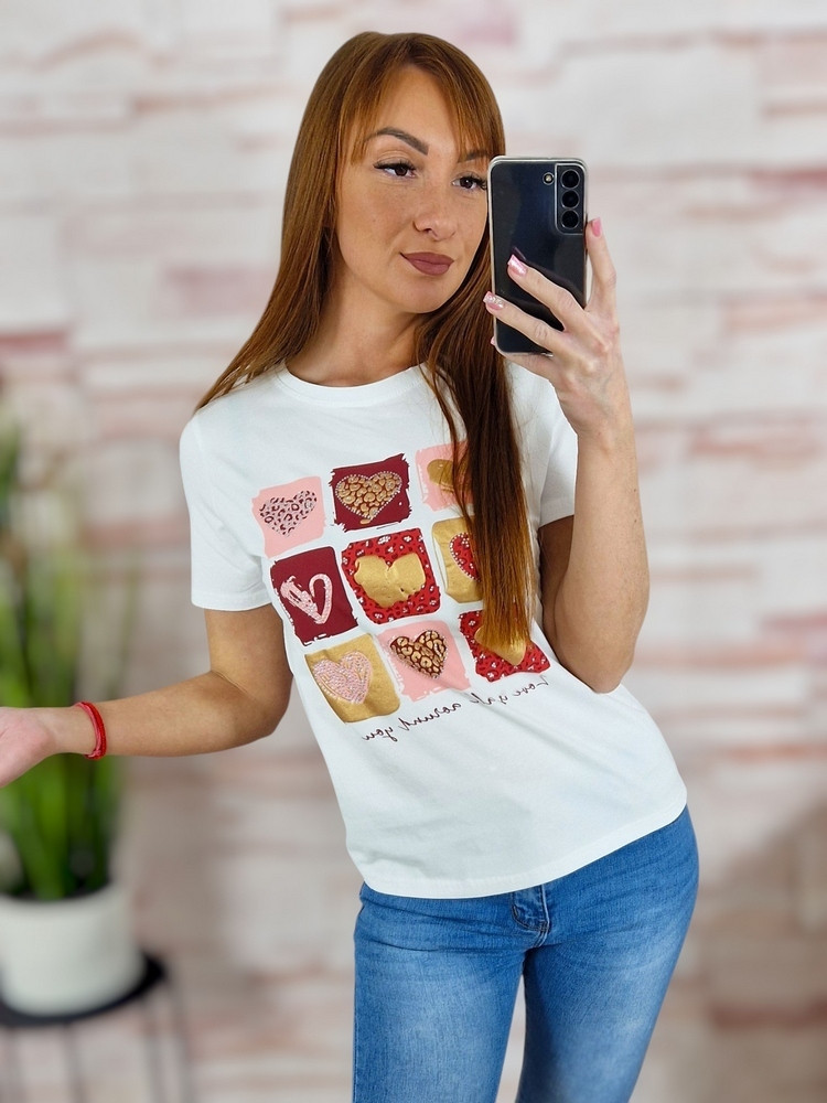 Szives mintás, strasszos díszítésű, rövid ujjú poló S-M,M-L